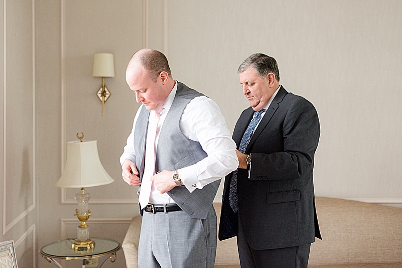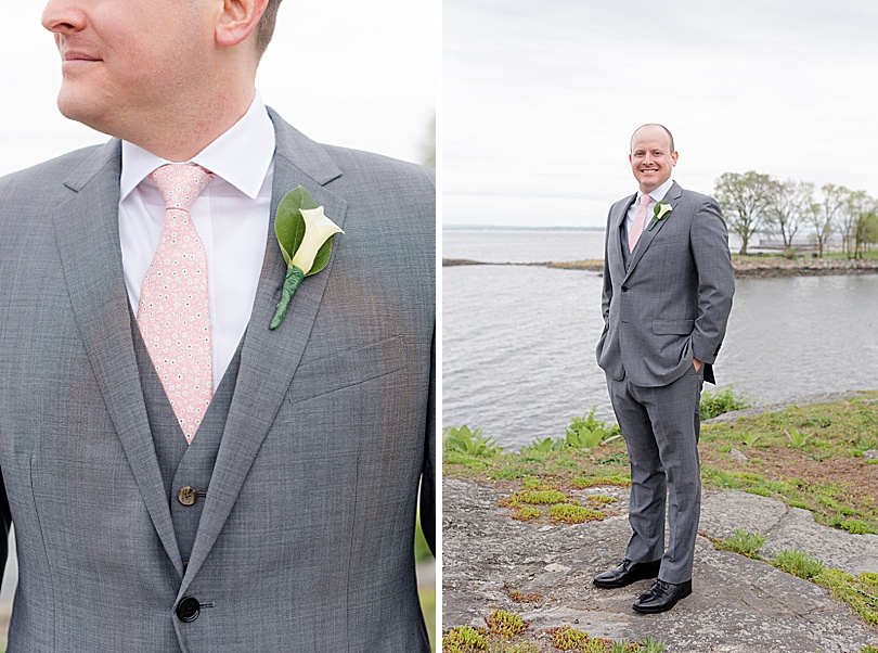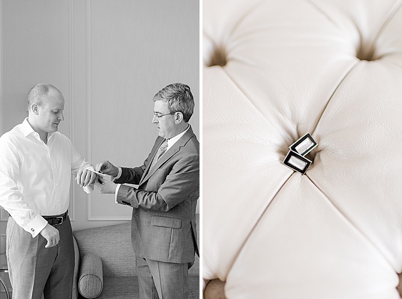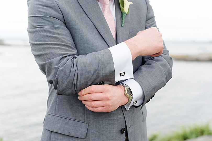 Glen Island Harbour Club is great because it has beautiful spaces for both the bride and groom that are separate, but close to each other. So I easily went right upstairs to meet the Groom and start with photos of his details and then him getting ready.