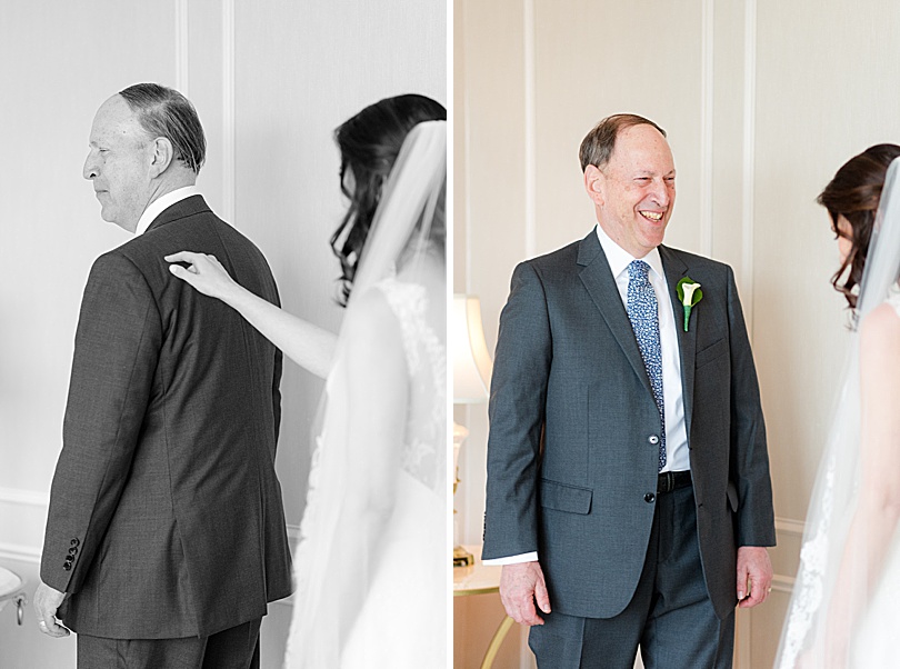 Once the Groom was finished getting ready I went back downstairs with the Bride and photographed a couple portraits as well as captured her first look with her father.