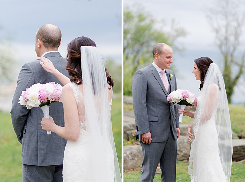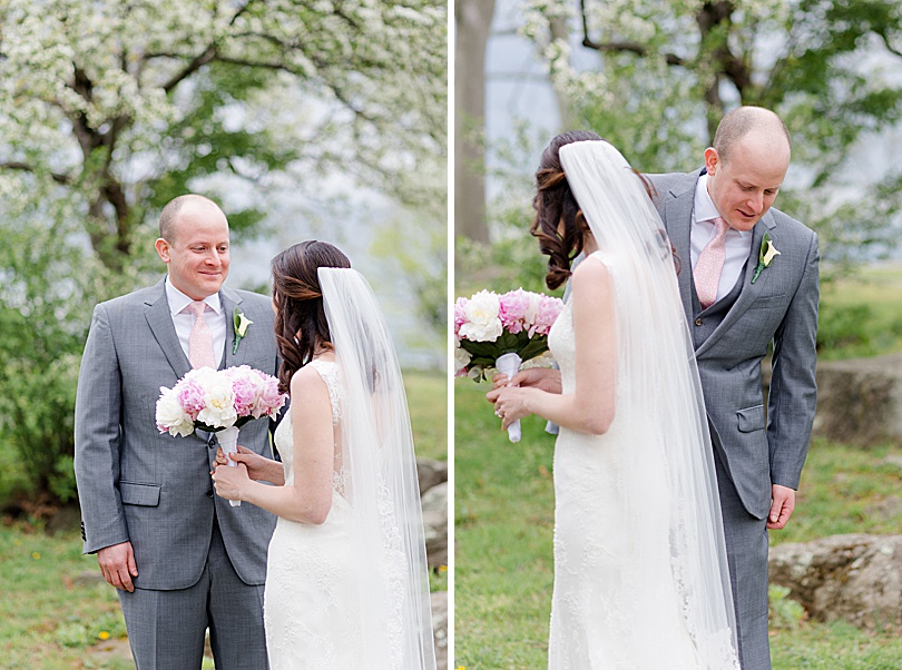 The Bride and Groom's first look outside before their Jewish Spring Glen Island Wedding in New Rochelle, NY