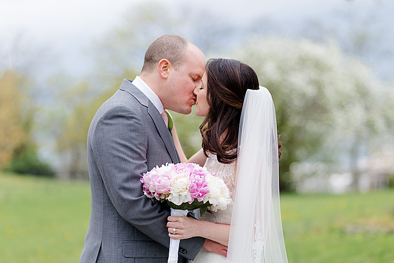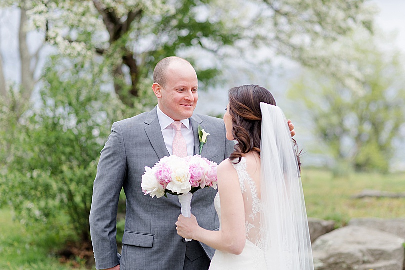 We captured the Bride and Groom’s photos while the bridal party made their way to meet up with us. I love this picture! It’s so dreamy with the bride and groom and spring literally opening up behind them.
