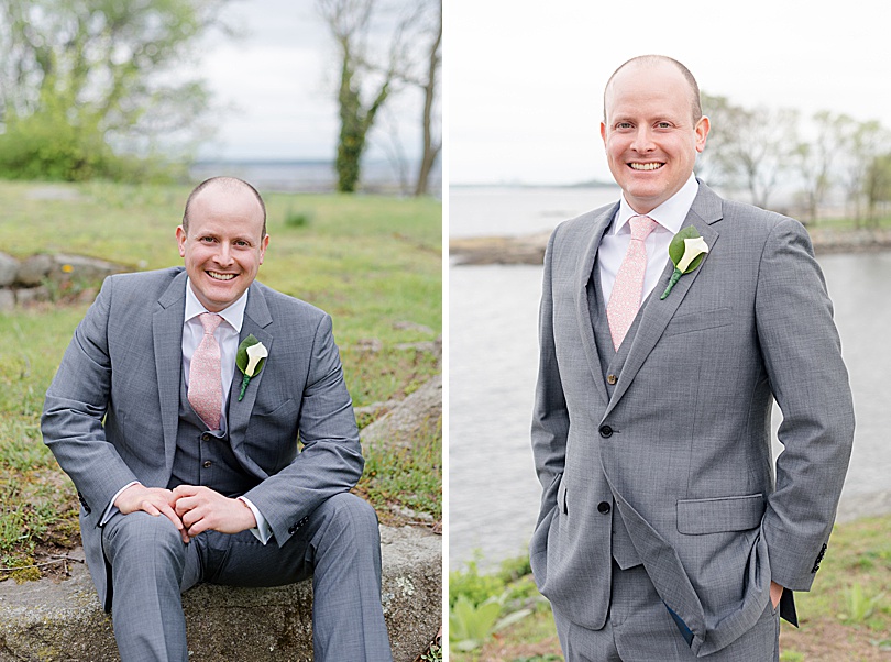 Groom's portraits outside before the Jewish Spring Glen Island Wedding in New Rochelle, NY in early May