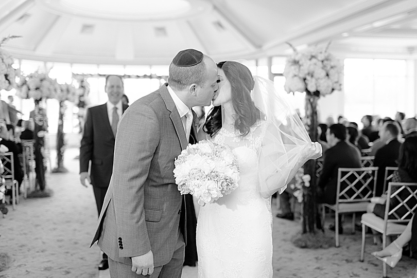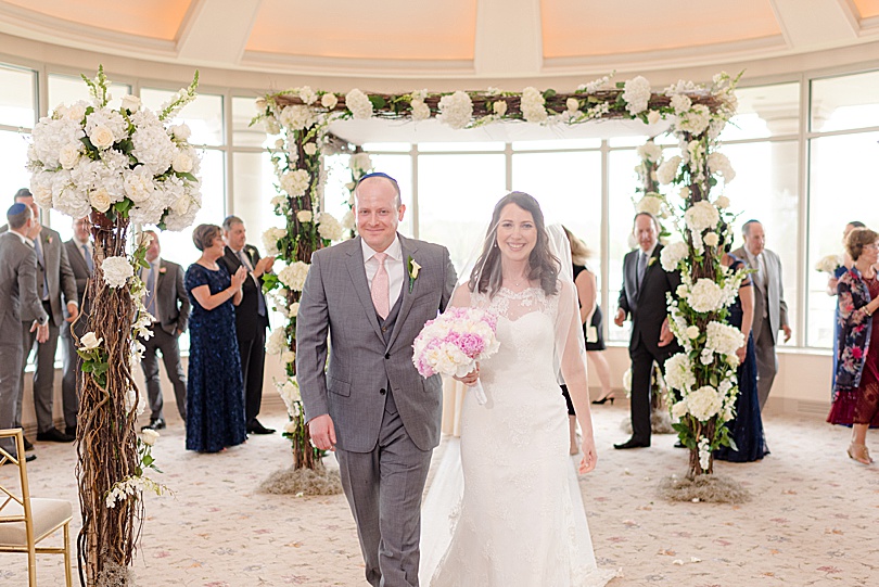 Couple walks back down aisle after getting married during a Spring Glen Island Wedding Jewish Ceremony in New Rochelle