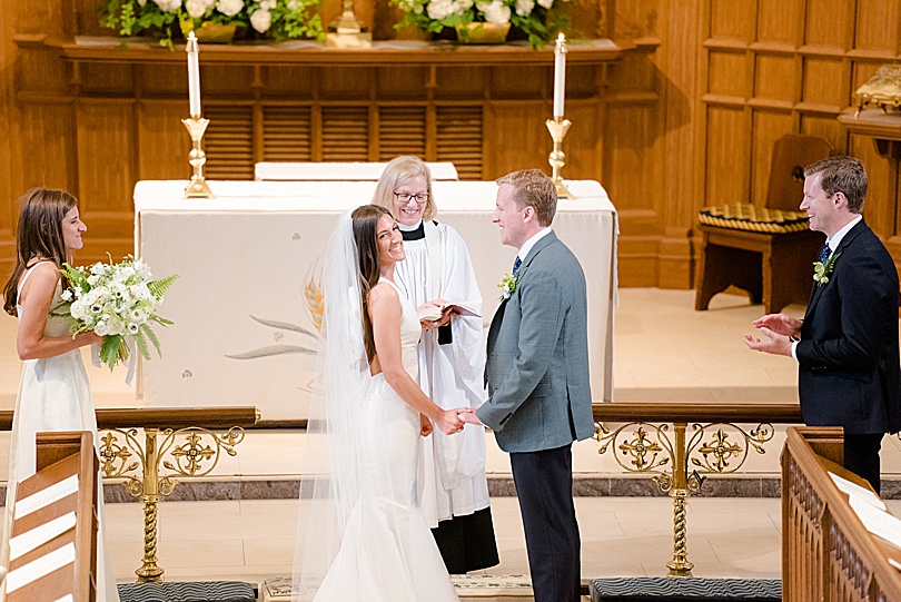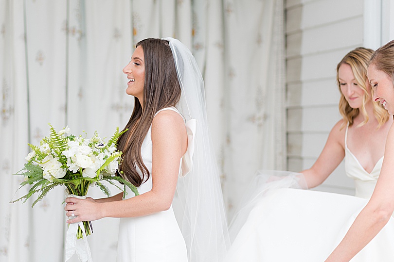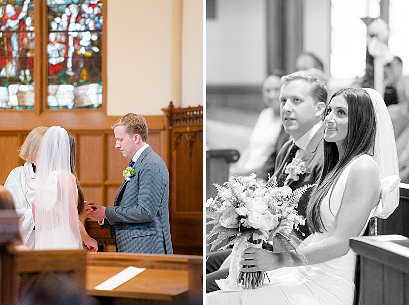 The Bride + Groom got married at the beautiful Trinity Episcopal Church in Southport, CT. The grandeur of this white church and its architecture, including the incredibly tall steeple is amazing and inspiring. The church has been in the community for over 150 years. According to the church’s website, “its buildings have been ravaged by British soldiers, wind, fire, tornado, and most recently, Hurricane Sandy.” But it stood beautifully that day.