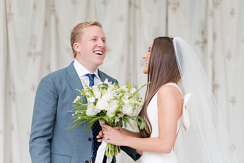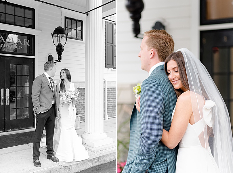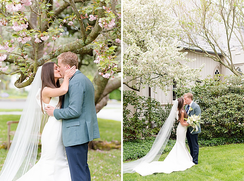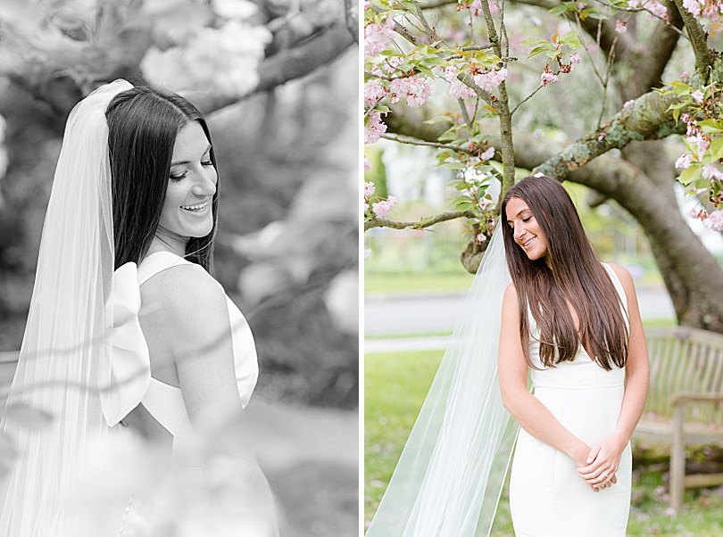 I just love beach portraits! The Bride + Groom really got a wide range of portraits during their Tokeneke Club wedding. Classic portraits at DeLaMar Southport, traditional portraits with blooming spring trees around the Trinity Episcopal Church and then more relaxed portraits on the beach with the water at the Tokeneke Club. We didn’t take a long time at any of the 3 places, 15 minutes max at each place, but it really added up to quite the gallery of portraits for them.