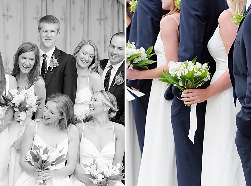 I loved all the white bridesmaid dresses with white bouquets and the navy groomsmen suits.