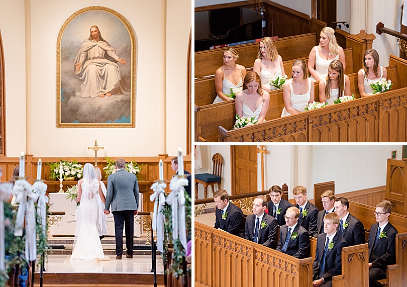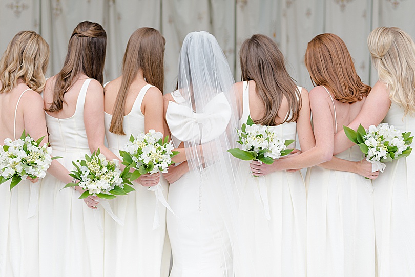 The Bride’s dress was simple and elegant on the front and then there was a big bow on back of the dress for a surprise. The Bride’s look and the bridesmaids simple white dresses and bouquets felt very Kate and Pippa Middleton.