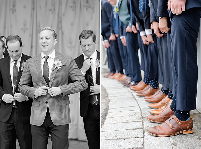 I always love matching groomsmen socks, especially navy and white polka dot!