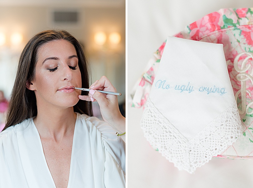 The Bride gave all of her bridesmaids these embroidered “No Ugly Crying” handkerchiefs. Such a cute idea, but would I think it’s too pretty to use and get makeup on it!