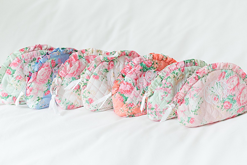 She also gave her bridesmaids these adorable monogramed floral toiletry bags.