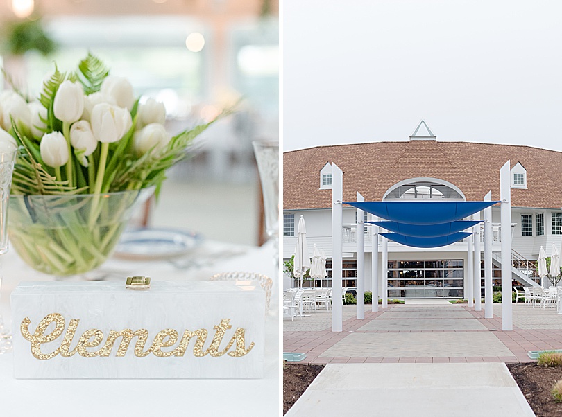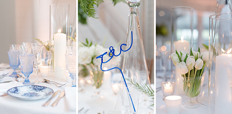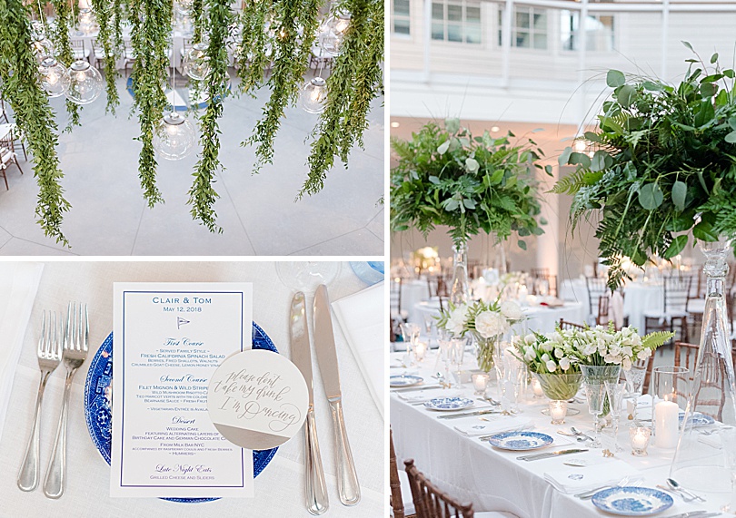 Are you ready for all the details? This just might be one of my top receptions that I’ve shot for details. The Bride went all out and this beach club in Darien, CT was totally transformed! To start the florals were mainly different types of greenery with different types of white flowers. (Including white Tulips which I love!)