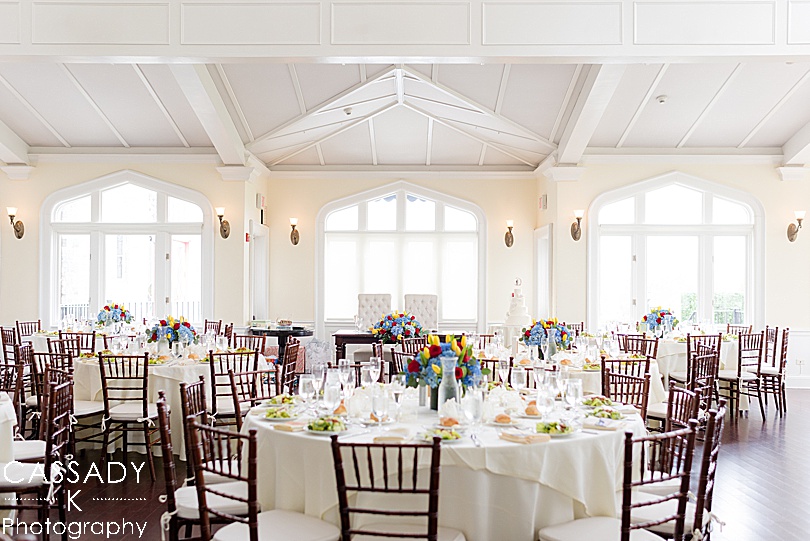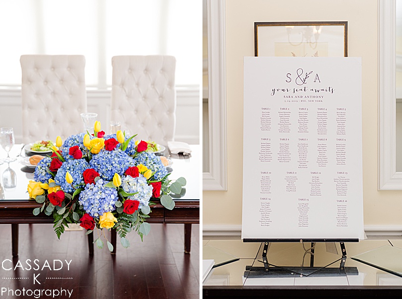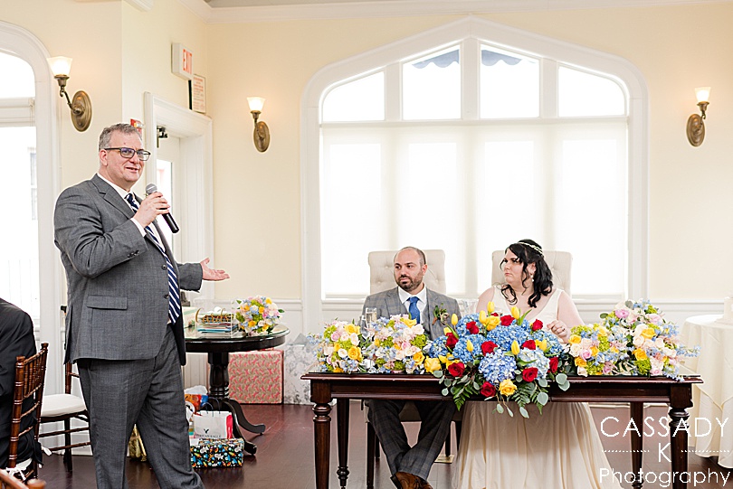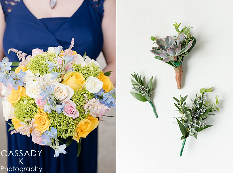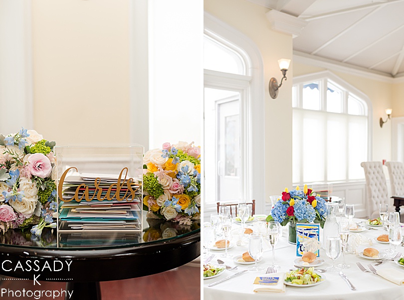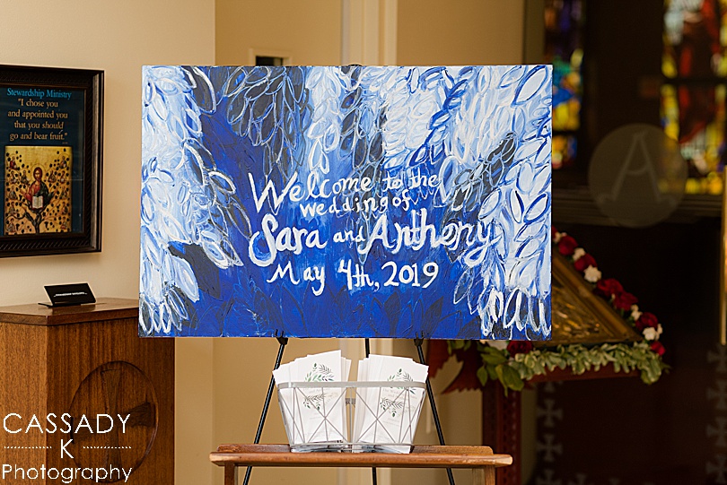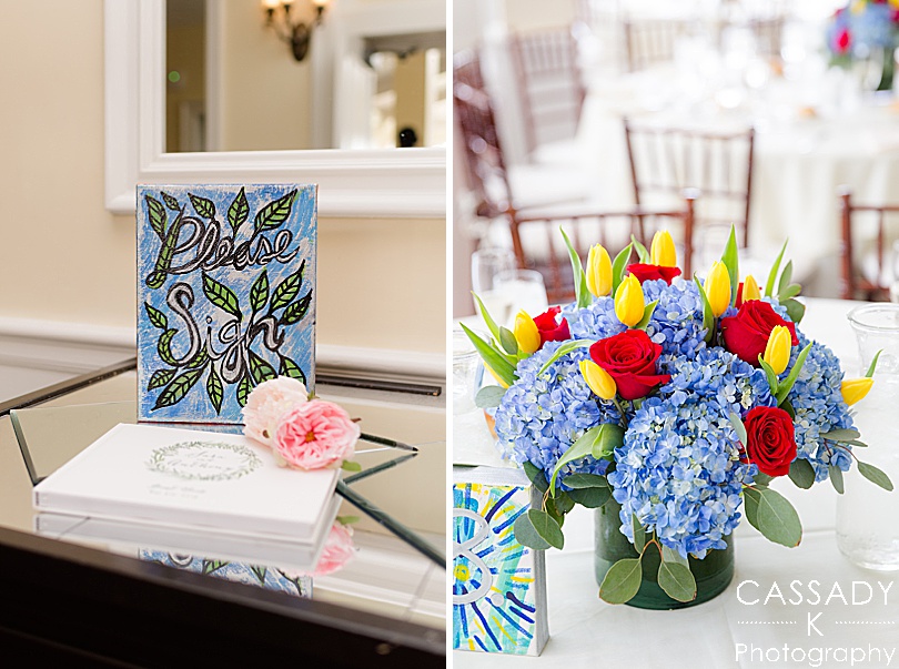 Sara wanted a lot of color, florals and greenery throughout her wedding day and the reception definitely had that theme. The reception really showed off everything she had made like the canvas she painted for people to sign the guest book.